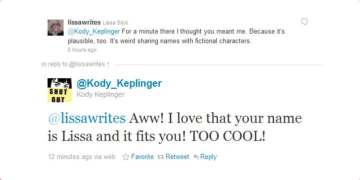 Sweet! I had no idea one of her characters was named Lissa, too. Nice shout out! :)