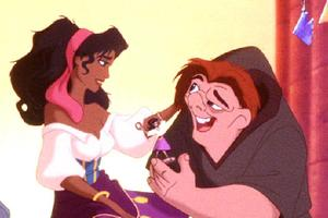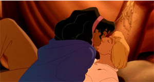 No, I won’t show the Esmeralda-Captain Feeble kiss, because I am protesting their relationship. I like to pretend she dumps him and goes running back to Quasi to send the audience a message of, “It doesn’t matter what you look like, it’s what inside that counts.” i.e. “It doesn’t matter if you’re born horrifically deformed and have no self-esteem, even the most beautiful and lusted after girl in Paris can still fall in love with you.”